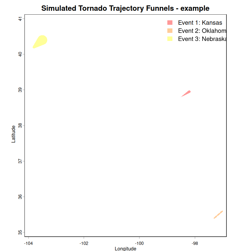 main = "Simulated Tornado Trajectory Funnels - example",
