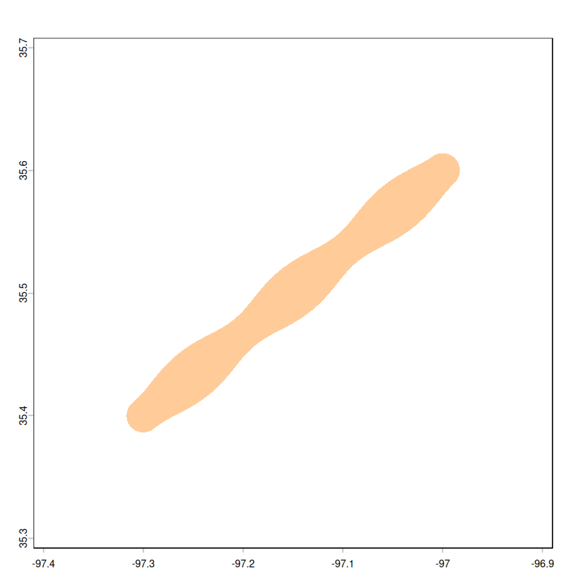 plot(t2, col = rgb(1, 0.5, 0, 0.4), border = NA, xlim = c(-97.4, -96.9), ylim = c(35.3, 35.7))
