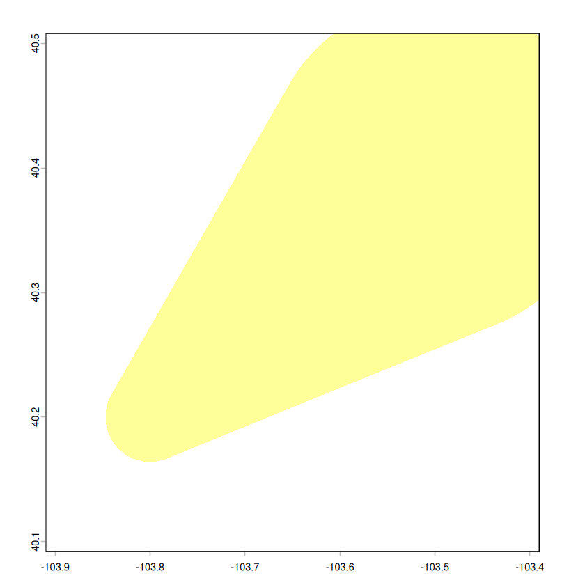 plot(t3, col = rgb(1, 1, 0, 0.4), border = NA, xlim = c(-103.9, -103.4), ylim = c(40.1, 40.5))